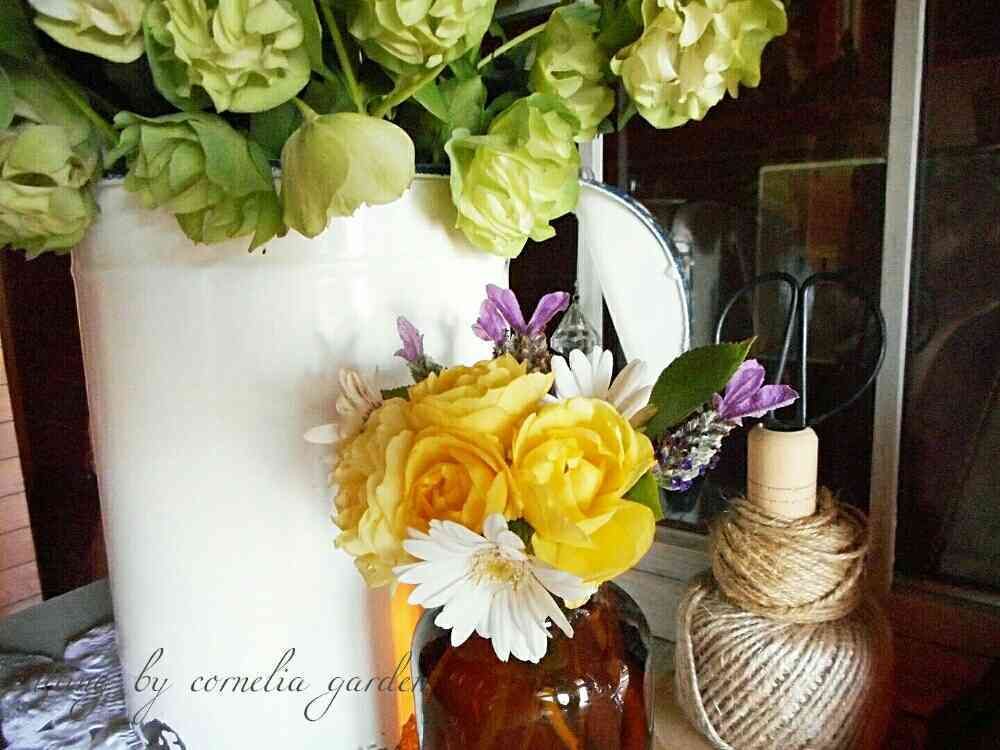 まだグリマスローズ咲いているのですね🎶茶色の花瓶に黄色の薔薇コーネリアさんのセンスが光ります✨✨