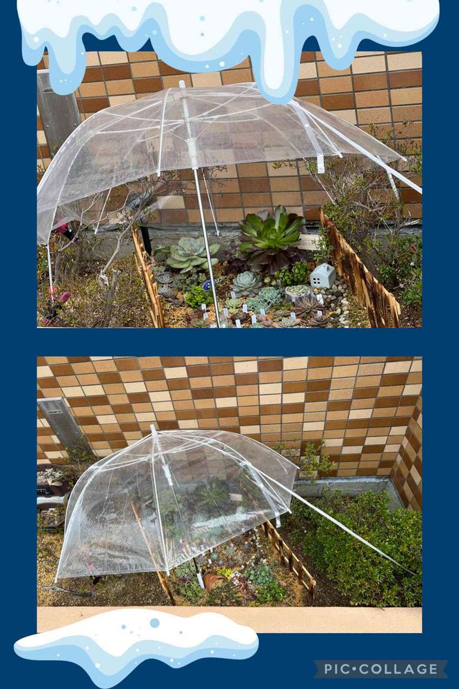 乾きのよくない花壇に傘を刺してあげました😁霜除けにもなるかな⁉️