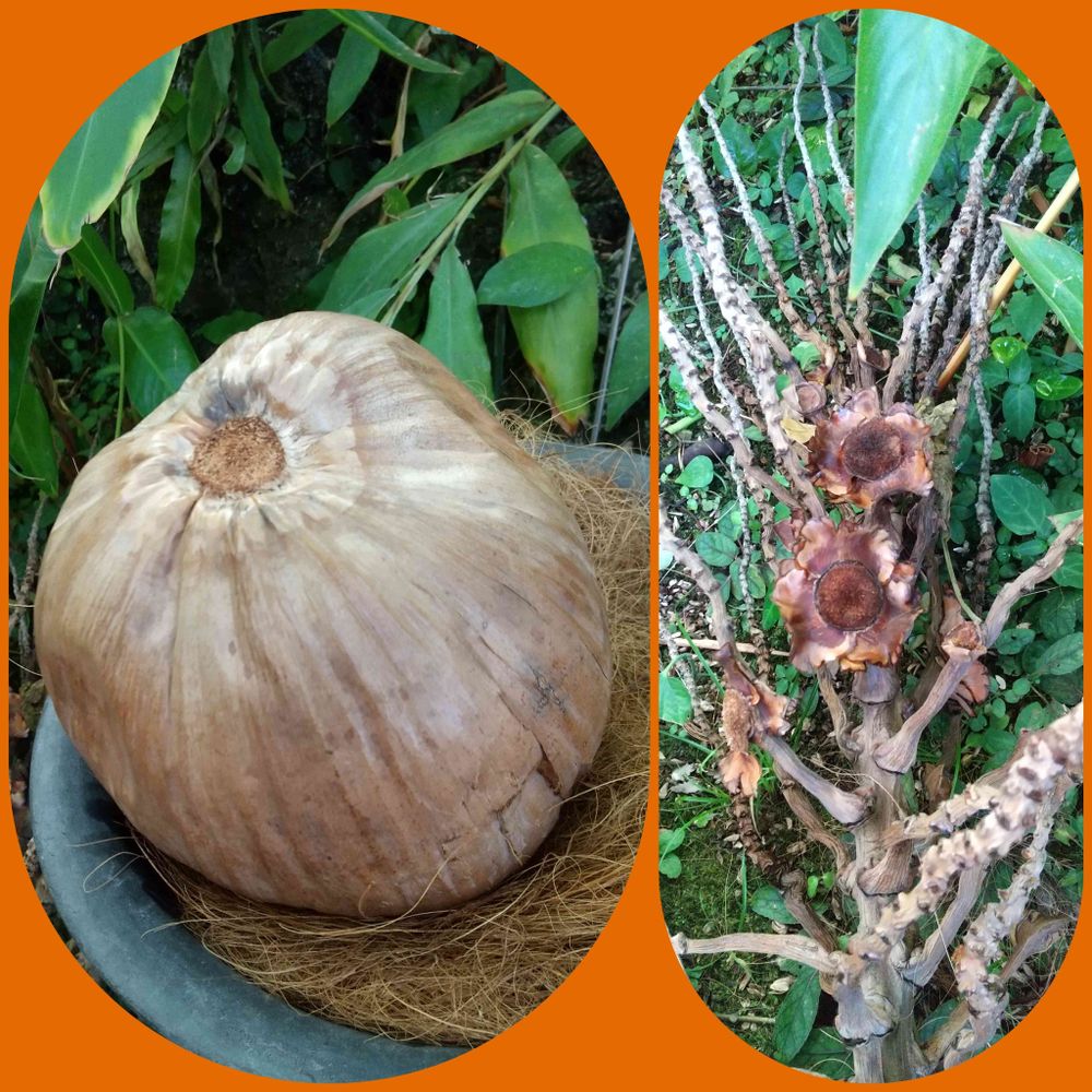 側に置いてあった「椰子の実が付いていた枝のヘタ」、柿のヘタを大きくしたような形でした。😲!!