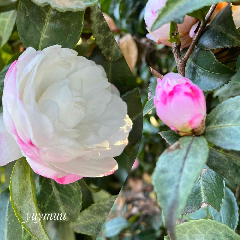 遊歩道に沿って続き、違う場所でもやっぱり心惹かれ❤️後から同じサザンカだと気づきました。