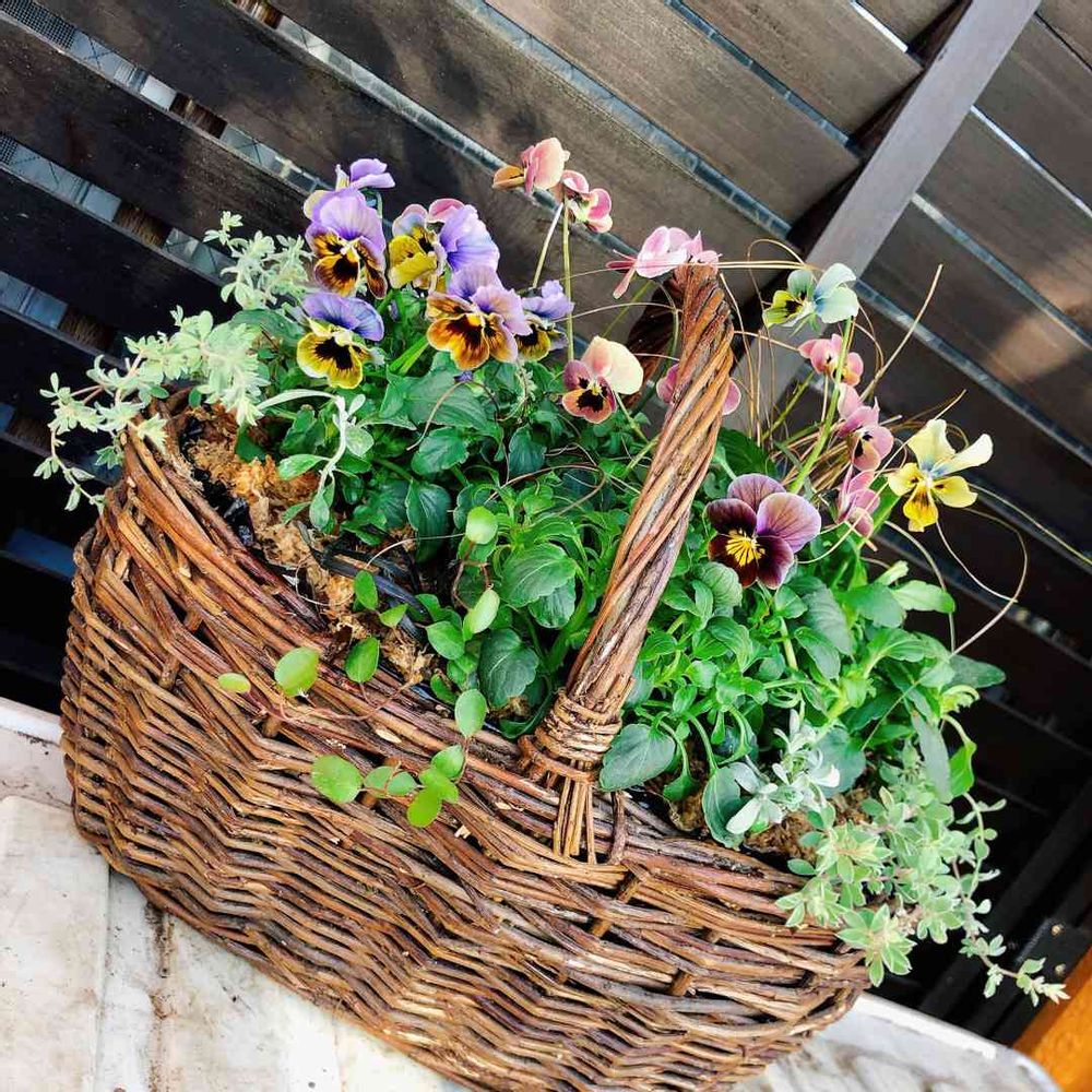 花買った時にオザキ2階で合いそうなカゴも買ってそれに植えつけ。