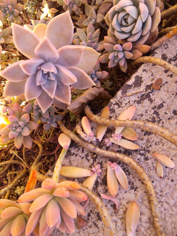 南側花壇 地植えの・グラプトセダム・秋麗さんが 勝手に葉挿しちゃんを作ってました😻💗🤍