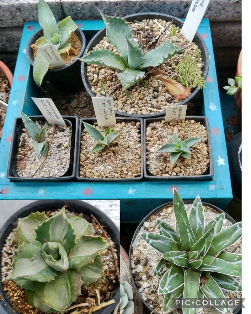 サボテンを避けて、玄関にアガベコーナーを作りました。