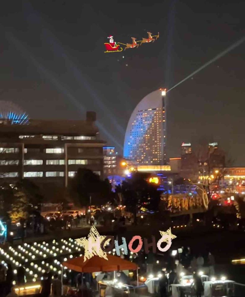 え〜、、マジですか、、サンタさんが🎅飛んでいる、、