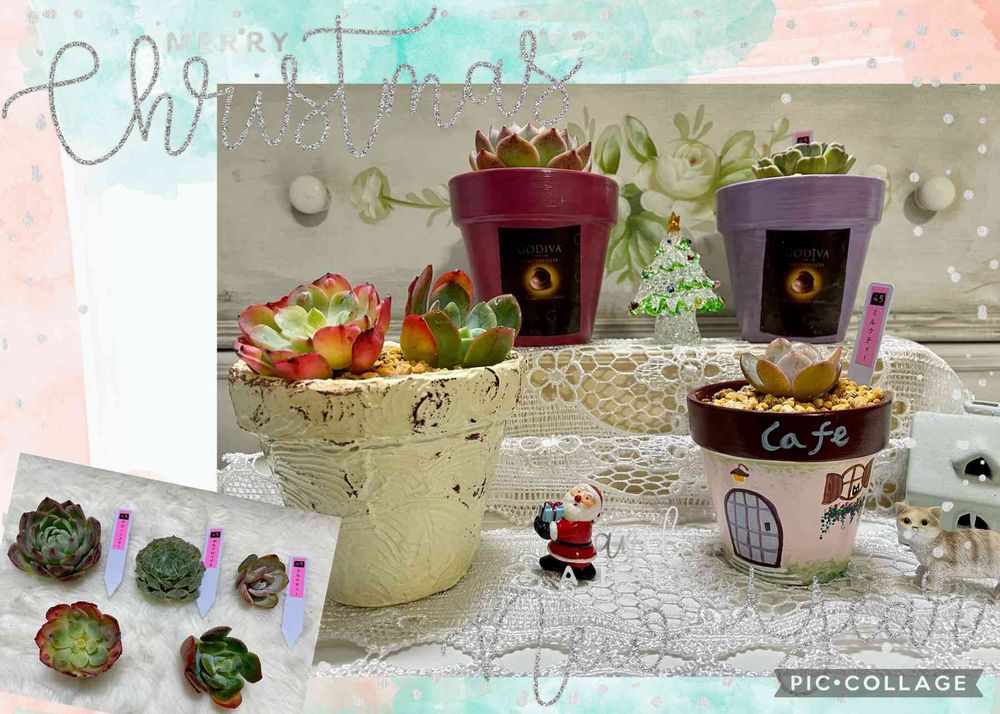 かわいい多肉ちゃんがどんどん増えて楽しいですね♬😆リメ鉢もおっしゃれー❣️デコパージュ❣️ビヨーヨーンと見ましたよ😆わかんな〜い😍クリスマス🎄🎅感出てます〜♬ステキ✨