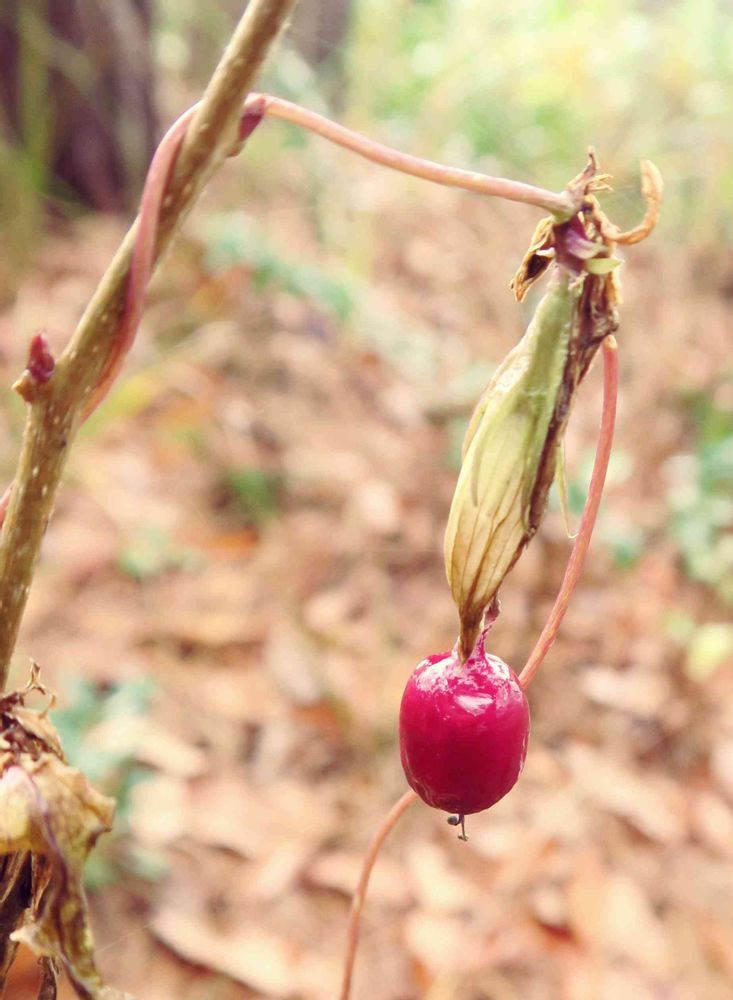 秋にかけて釣鐘型の花を付け晩秋、赤い実をつける。🎉