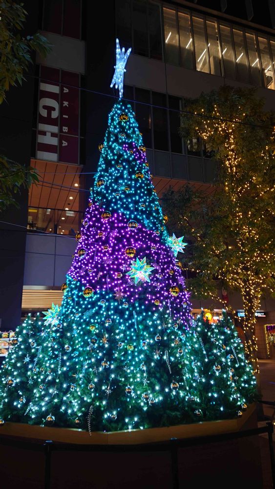 秋葉原udxのツリーイルミネーションがそれなりの規模でした。長めに2本ずつ並木になっていて、感じ良かったです。
