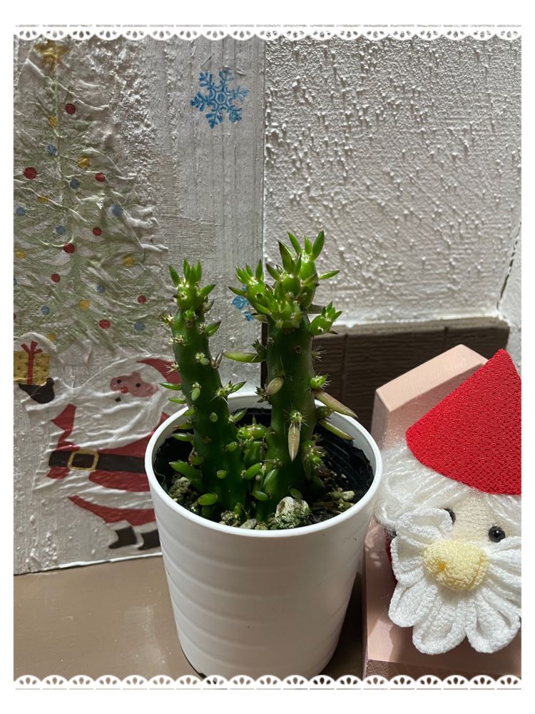 ツンツン出てて面白いね😃💗お花も咲くのかな😋 どっちのサンタ🎅さんも