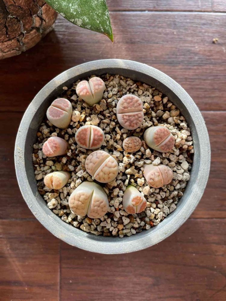 さん なんなんでしょうね🤣 リトープスの魅力、というか魔力🤣🤣🤣 僕は今日、再・植え替えしました。先日行った無茶苦茶大きい多肉サボテン育成ハウスの仙人に「これ以上の土は作れない!」と言わしめる用土を買ってきたのでそれに植え替えました。ついでにぎゅうぎゅうだった子たちをバラけさせて鉢を増やさざる得ない状況に😅💦 もう置くとこないので、お猪口サイズの陶器を100均で何個か買ってきました。明日、穴を開けて使うことにします!