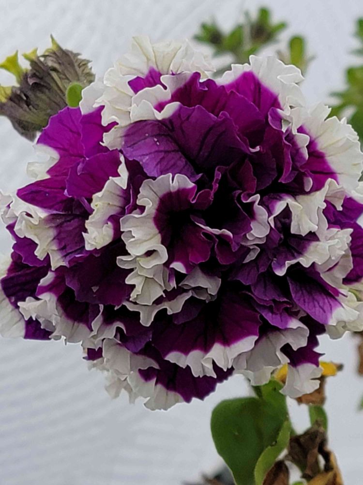 💜に🤍縁取りのペチュニアさんクシュクシュ(*´꒳`*ค"フリフリ♡可愛い綺麗に咲いてますねぇ🙋🏻♀️