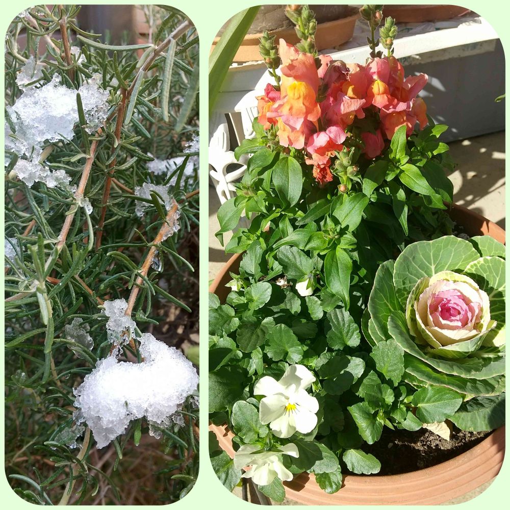ローズマリーにはまだ、雪が残ってます🌿