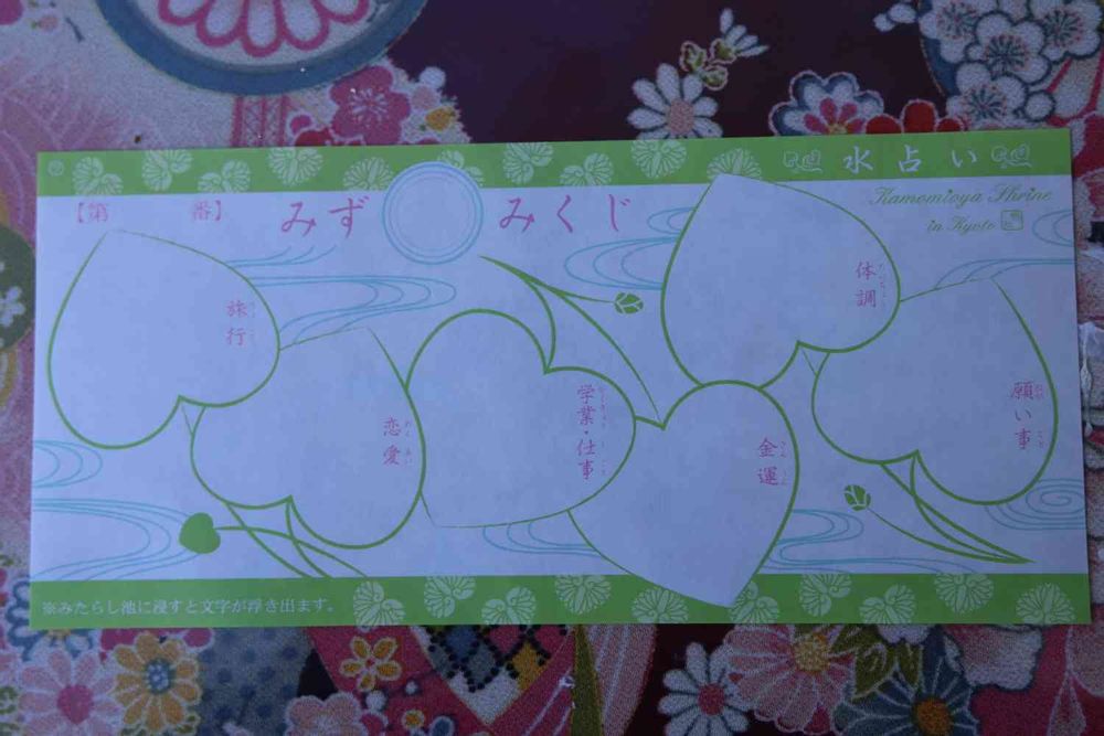 下鴨神社の水おみくじ。