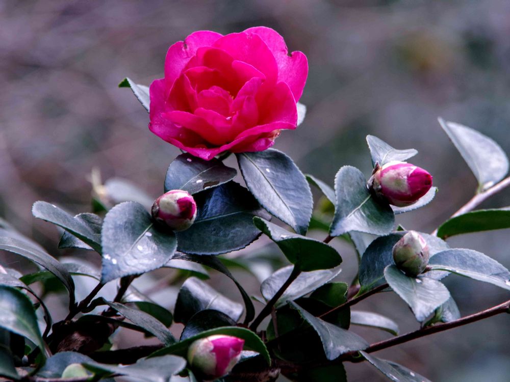 寒椿が寒さの中で、明るい笑顔を魅せています☀️
