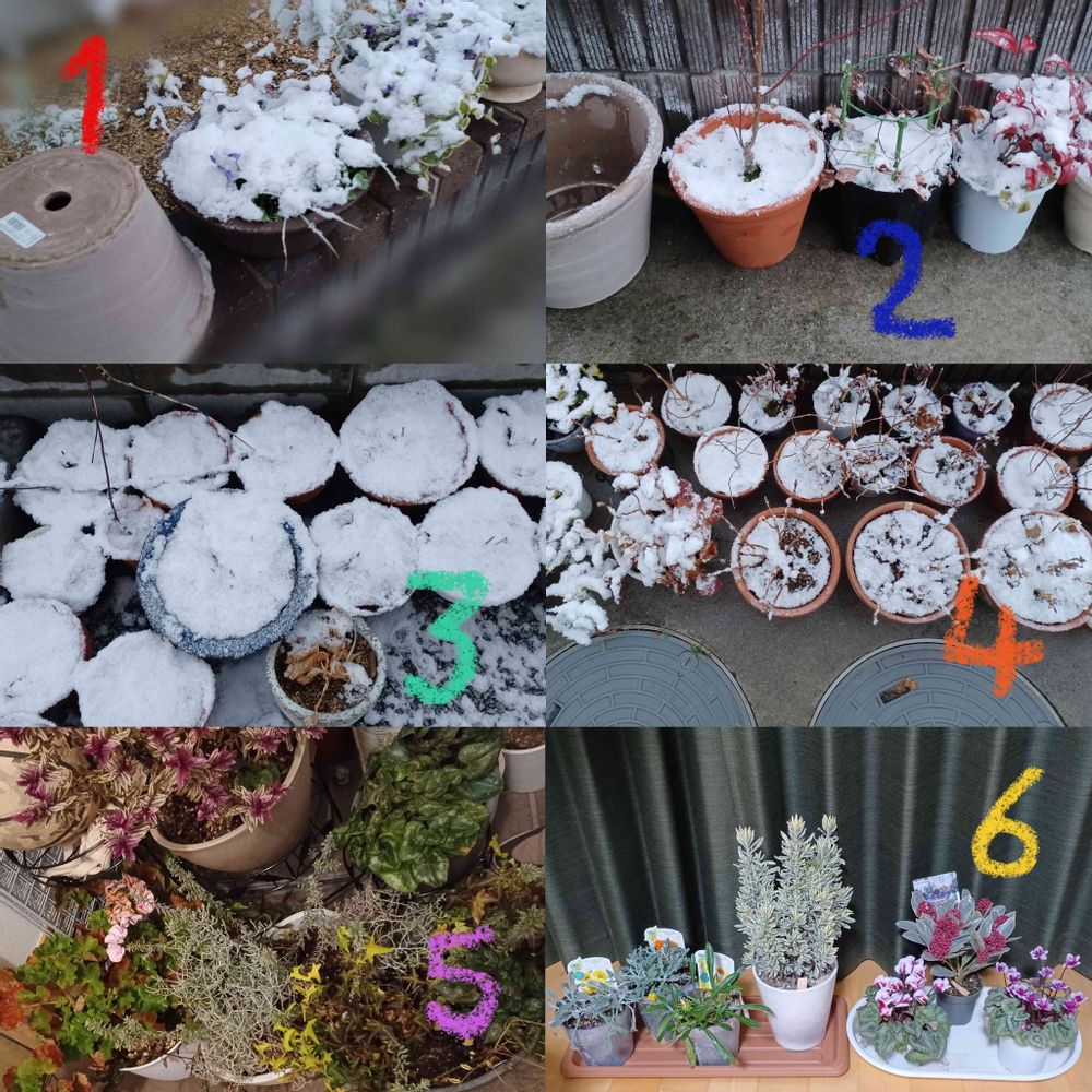 風上(北西の空っ風)に大きな鉢や壁があるところに寄せ鉢するのは定番ですが、注目は4番です☝️