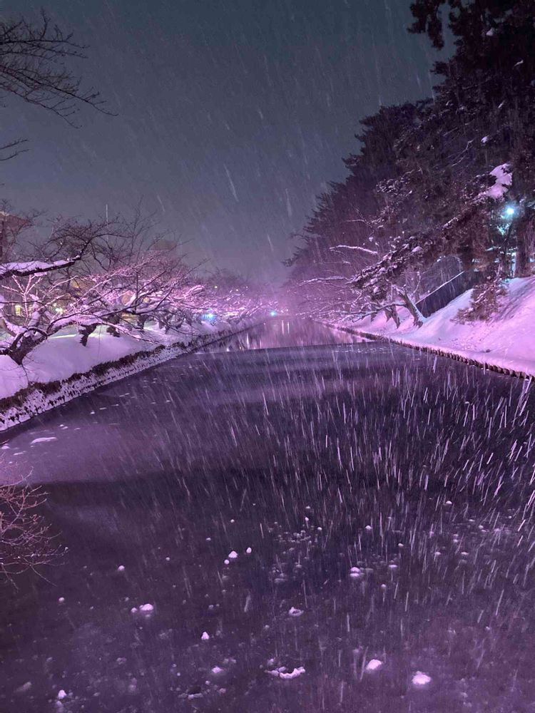 桜のライトアップ!雪が美しくて見るだけは良いね😅