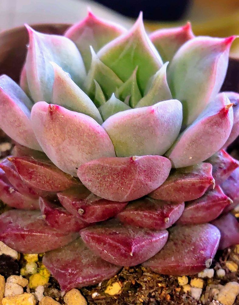 下の方から紅葉が始まった エケベリア・リトルコンチさん😻💜🤍💗💚