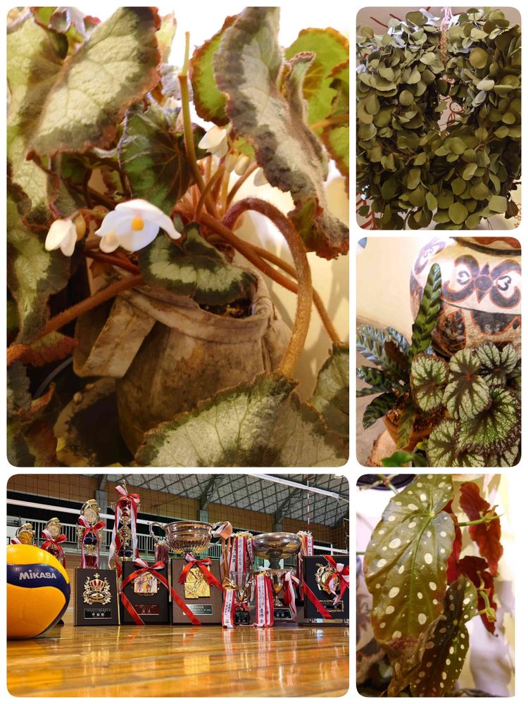 友達とこの珍しいグルグル葉っぱのベゴニアに可愛い花が咲いてた〜他のコたちも個性的✨🌿💚(ユーカリのリースも作ってた)