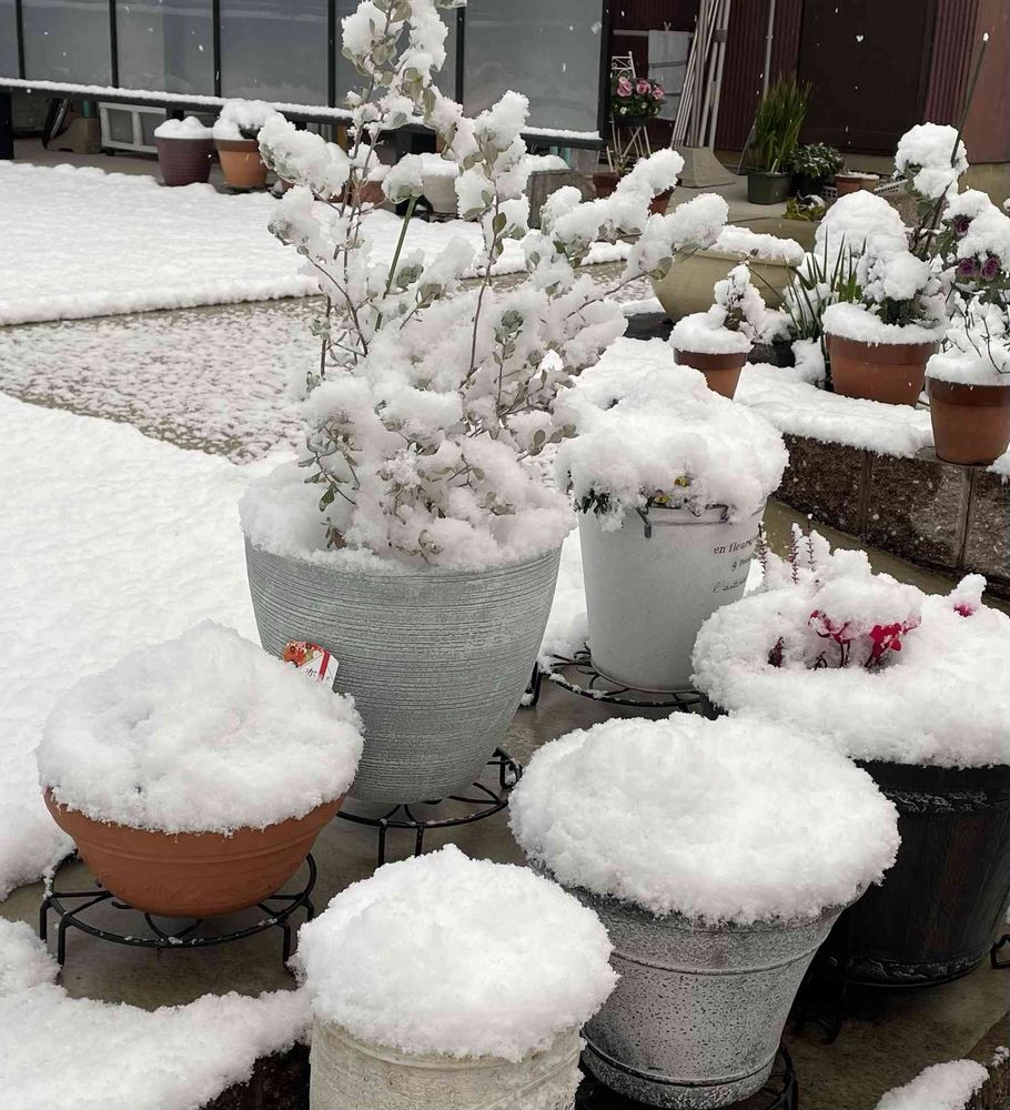どの鉢にも雪の帽子が😆
