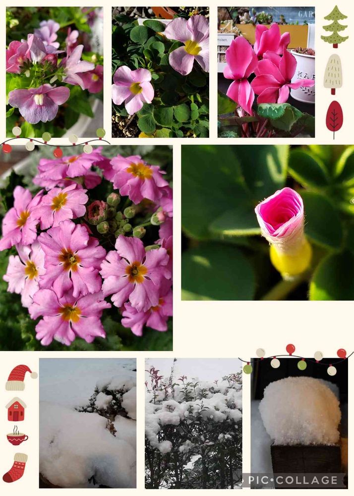 picの下は寒そうだけど 上を見るとピンクのお花たちがお日様に当たって気持ちよさそう(*˘︶˘*).。*♡