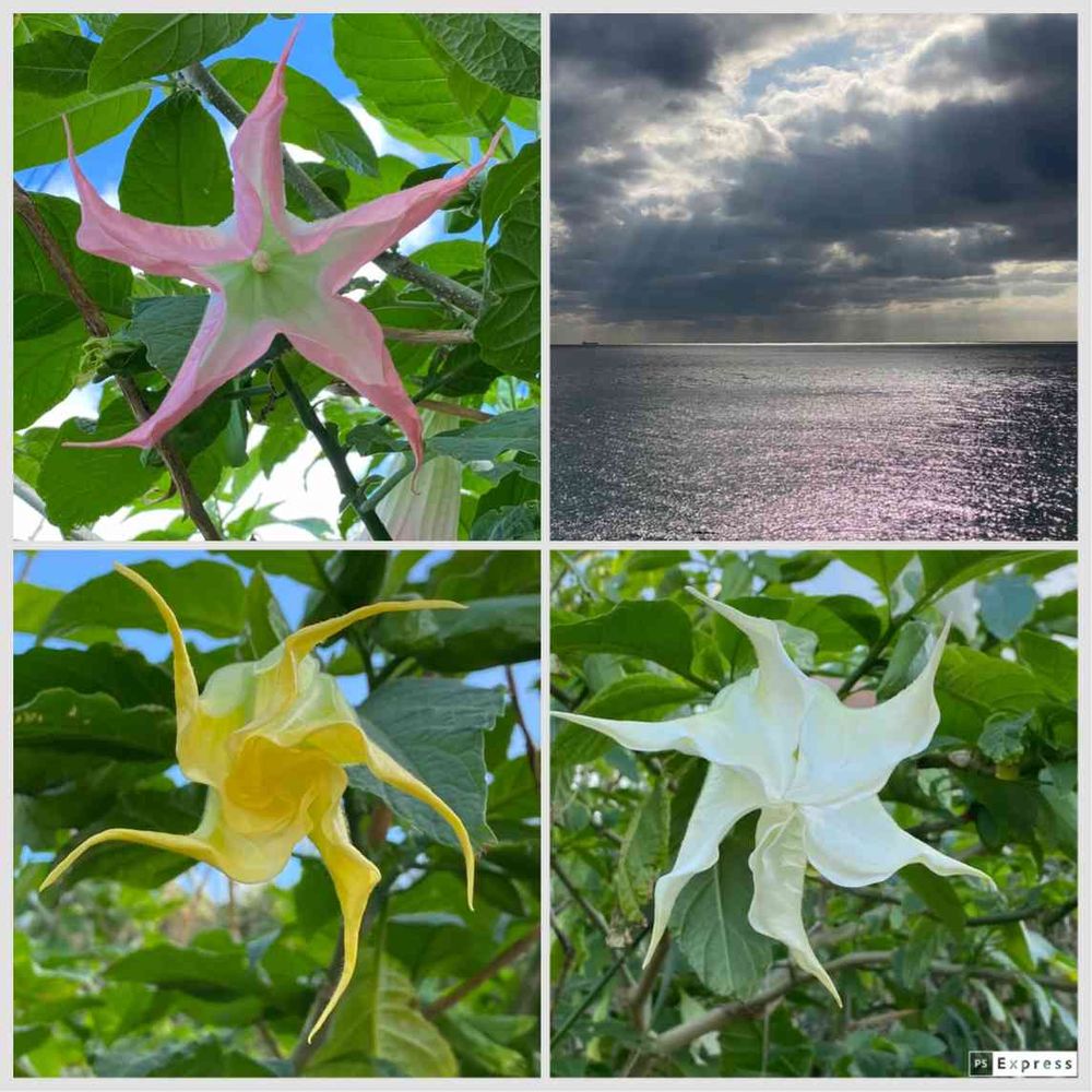 道路沿いに、見事なエンゼルストランペットの群生がありました🍀