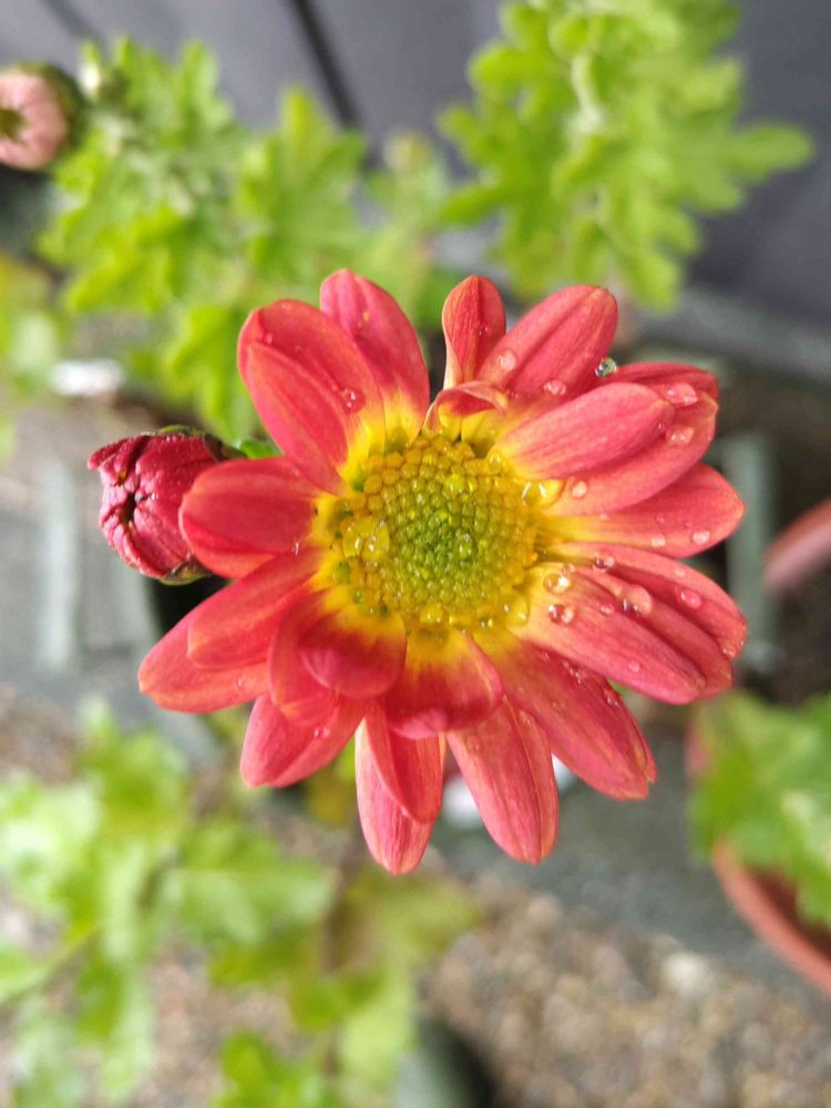 軒下に引っ越しした菊の花が開花中🙇
