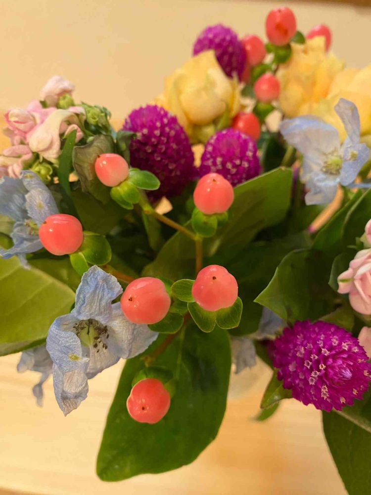 ヒペリカムの実が花束に入っていて嬉しいね