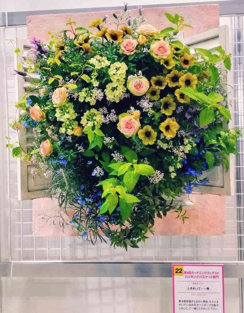 ガーデニングコンテストのハンギングバスケット部門の展示作品。