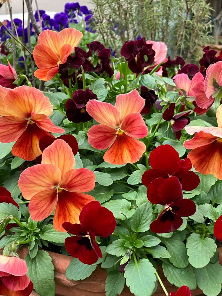 凍っていたパンジービオラの寄せ植えがほぼ元通りに。