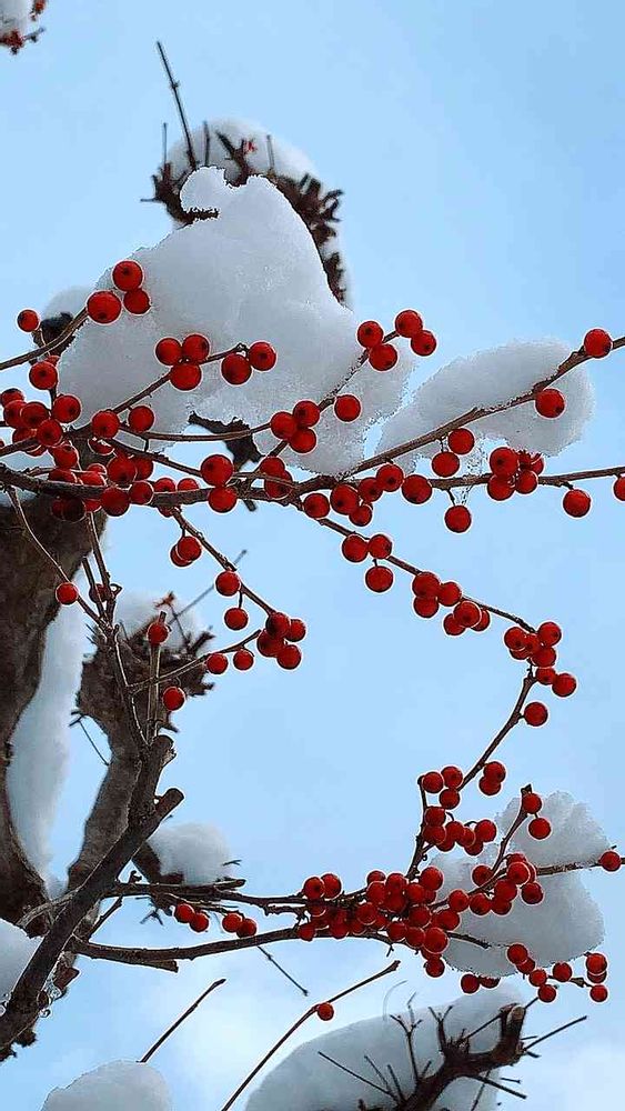 ナナカマドと雪が溶けかかって残っている姿が良いですね💕😻❄️❄️🍒
