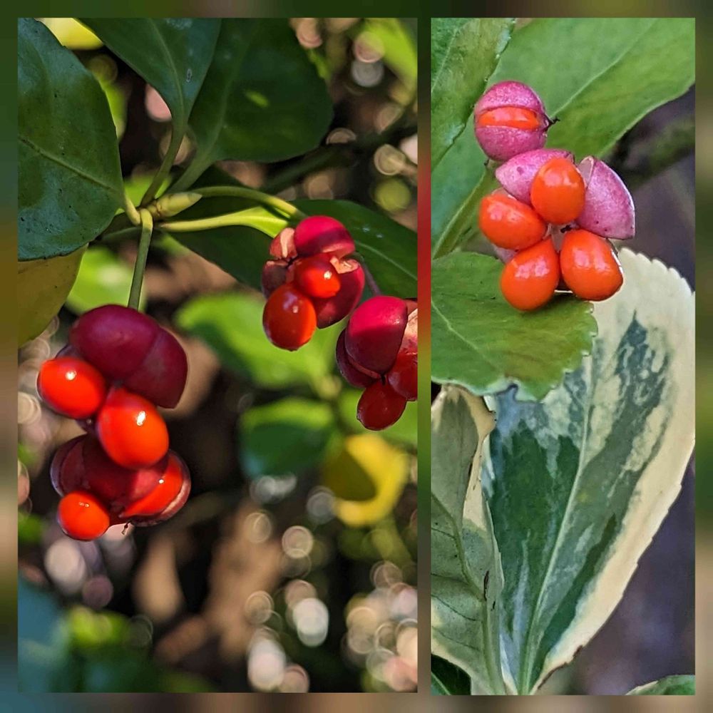 この公園にはたくさんのマサキが植えられていて、真っ赤な実(種子)が溢れんばり❣️❣️❣️