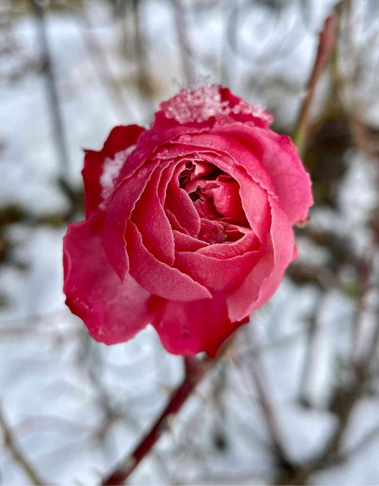 久々の投稿今日のバラ。12初めから剪定・植え替え中です。只今銀世界の中で、今季最最終のレオナルド・ダビンチ。