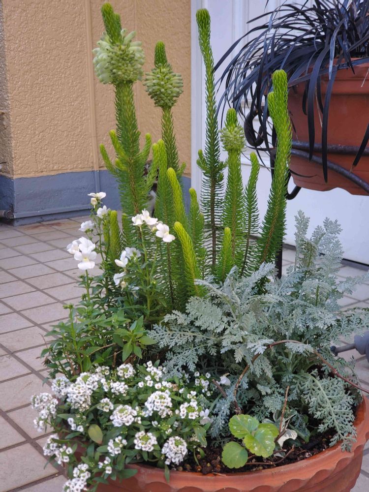 シルバーレースとアリッサムが残ったのでエリカ セッシリフローラと去年の苗