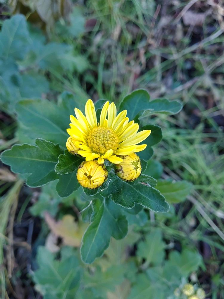 寒い中の緑の葉っぱちゃんの中から 元気に目を出して咲こうって頑張ってます 健気で可愛い花♡