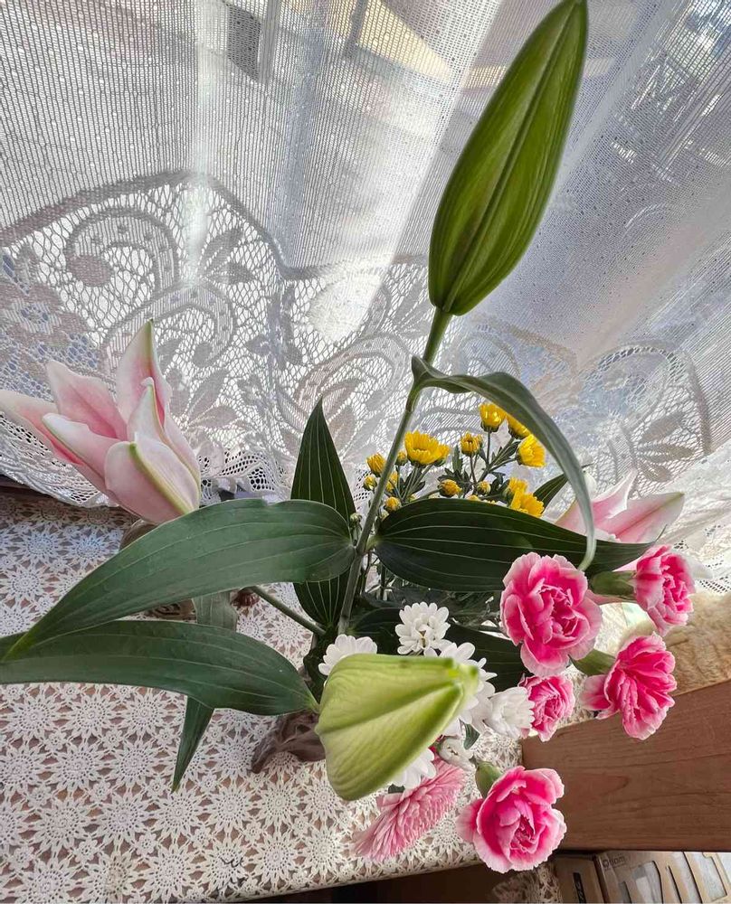 ユリ、カーネーション、菊を花瓶に挿しました✨