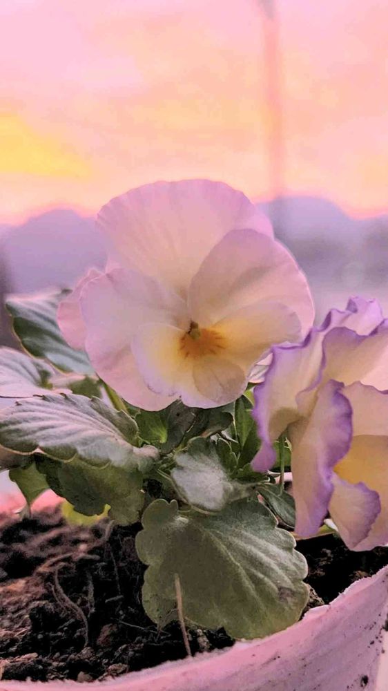 朝焼けがきれいだったのでビオラと一緒にパシャリ🤳