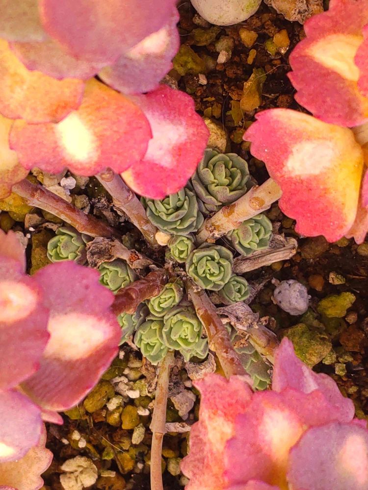 ヒロテレフィウム・斑入りミセバヤさんの紅葉と 薔薇のお花さんの様な冬芽ちゃんの競演😻💗🤍💛🧡💚