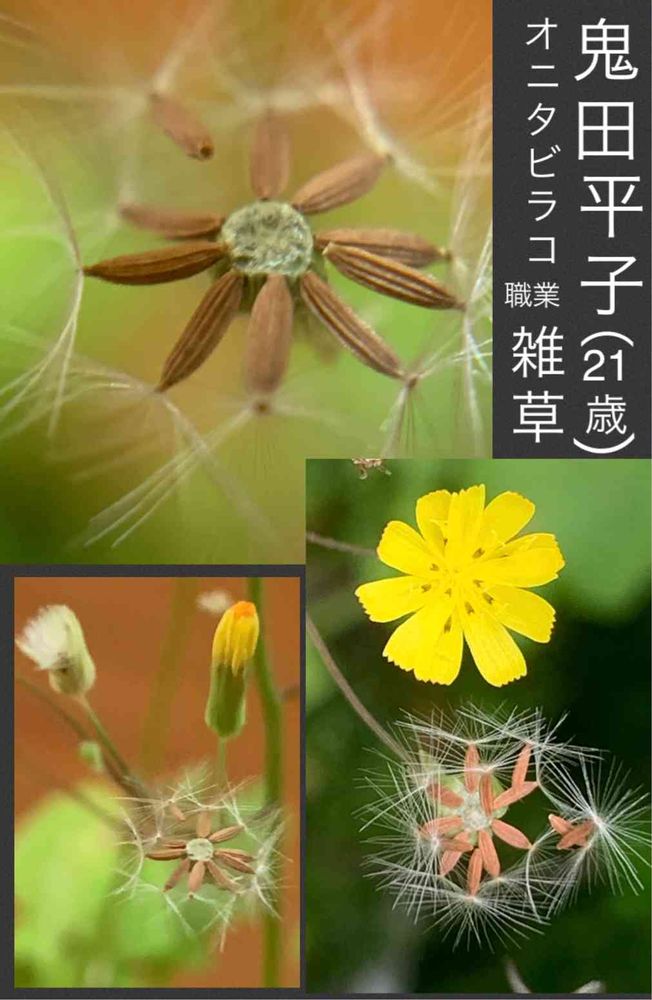 オニタビラコは、キク科オニタビ ラコ属の越年草。 道端や庭に自生 する雑草。