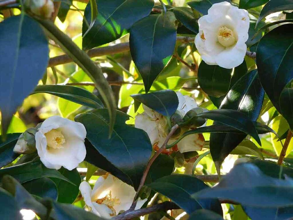 ツバキのシロワビスケ(白侘助)が咲いていました。