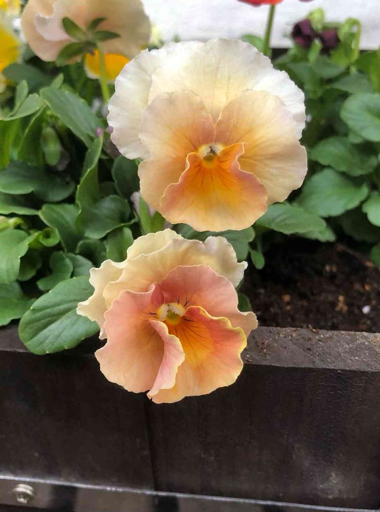 優しいオレンジ🧡色のフリフリのビオラ、素敵ですね。
