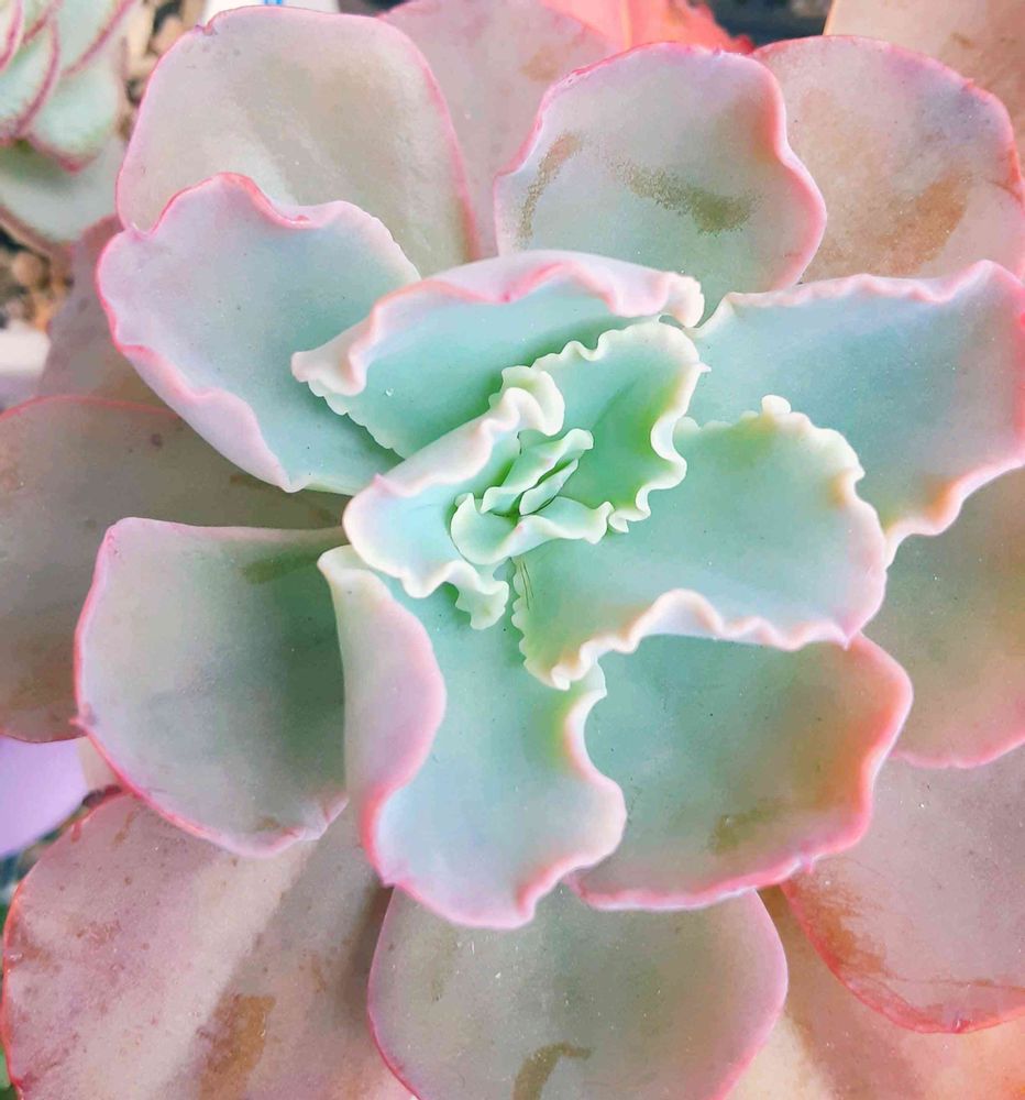 紅葉してフリルのある葉の縁はピンク色と淡いオレンジ色のグラデーションで中央にむかってミントグリーンになっていく色合いが可愛いですね(人´∀`*)