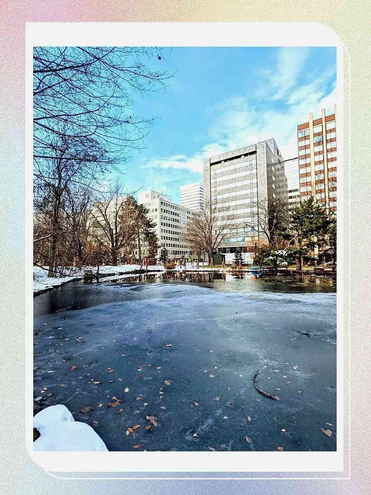 冬散歩,道庁赤レンガ庁舎前庭,凍りつく池の投稿画像