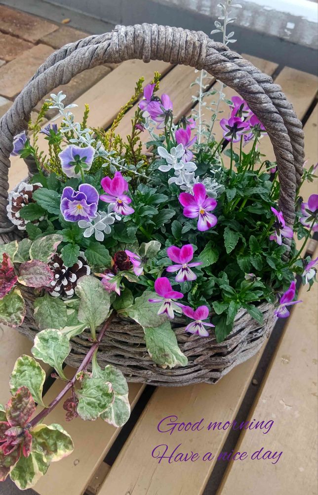 籠盛りのカワイイ寄植えがとっても良い感じ〜寒さ忘れますね〜🥰✨✨✨🎶🎶🎶💗💗💗💕💕💕