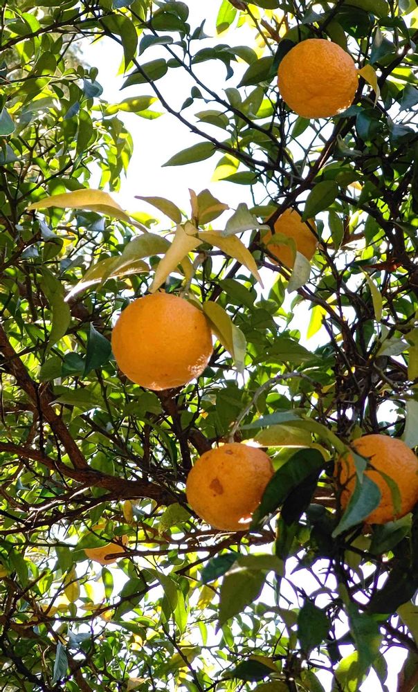隣の果樹園、といってもなんの囲いもなく、大きな実が揺れている🟡 一陽来復 まさにわずかずつ日が伸びる☀️