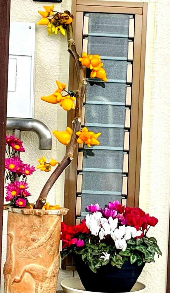 通り道のお宅の玄関前に、