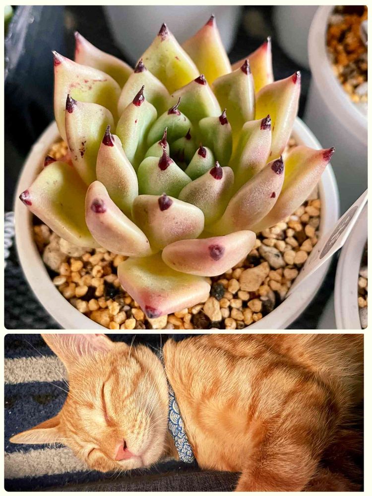 やっぱり多肉と猫ちゃん合いますよね♫時々狩られますが😂うちのチャトラも女の子。とてもおてんばですが(=^ェ^=)