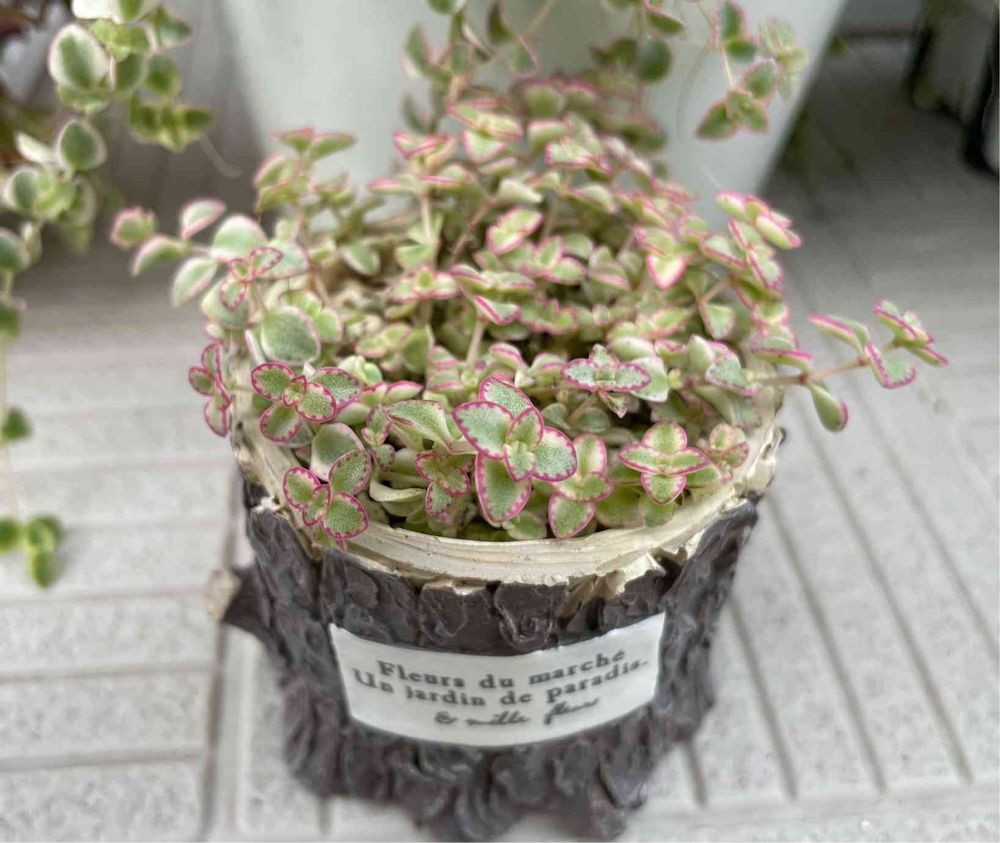 切り株型のミニ鉢に植え付けてるリトルミッシー