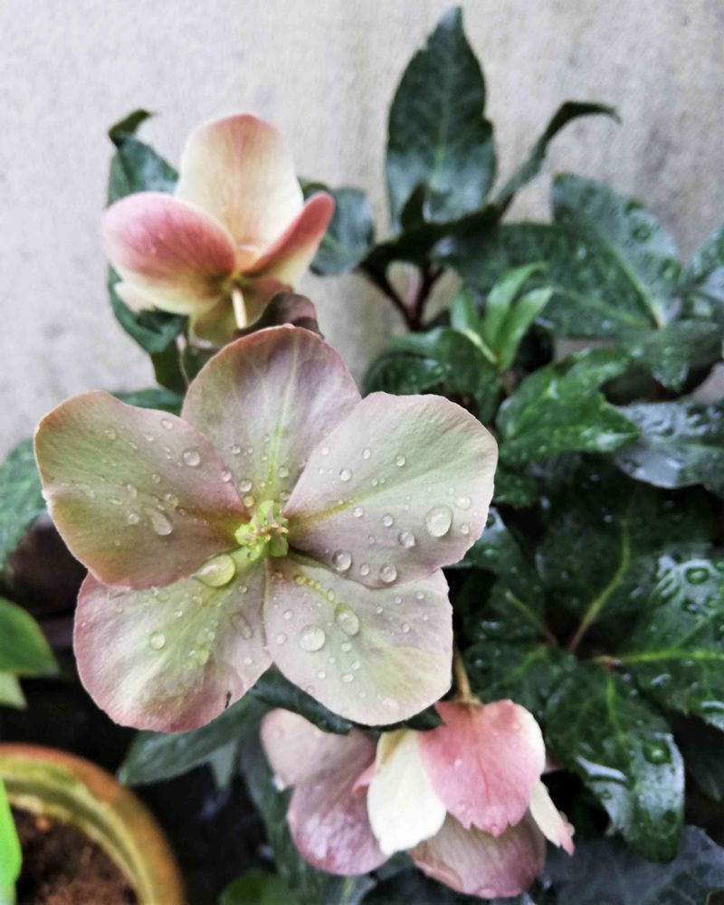 ヘレボルス・ニゲル/クリスマスローズの緑と褐色が入り混じった花 2022-12-18