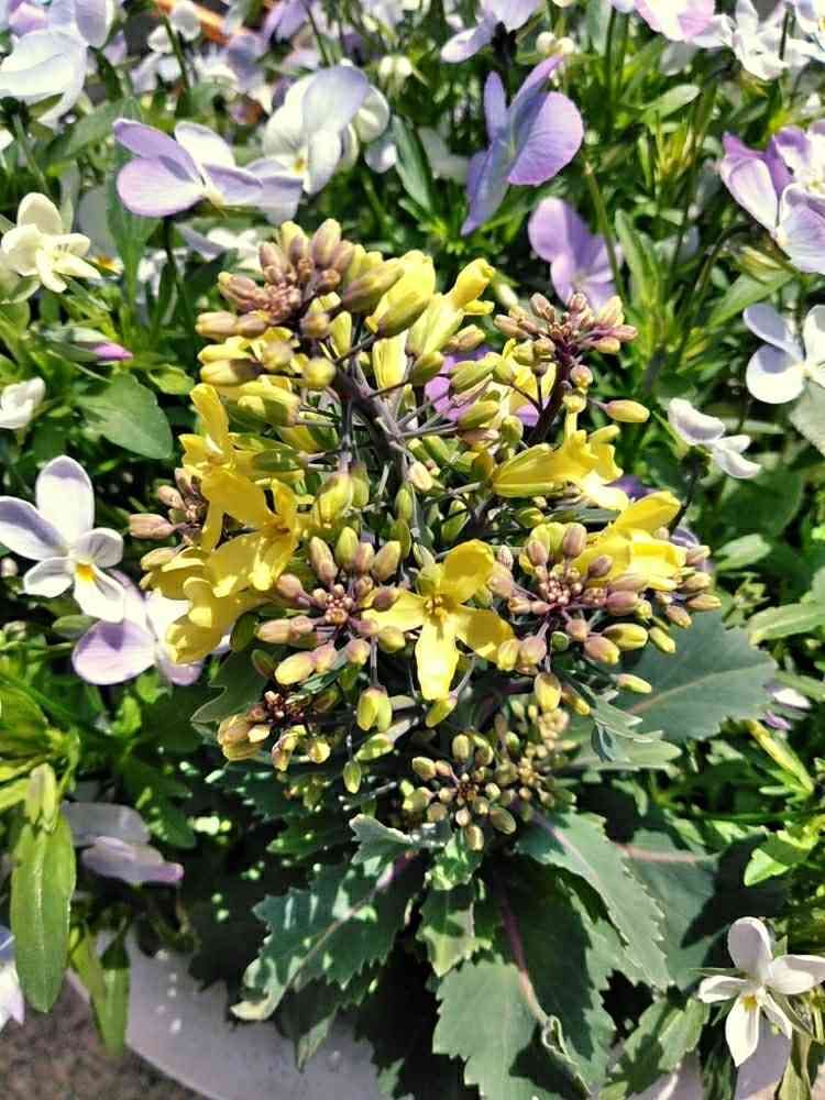 葉っぱが紫だから紫系のビオラと寄せ植えてたけど、黄色いお花はあまり合わないなぁ😅