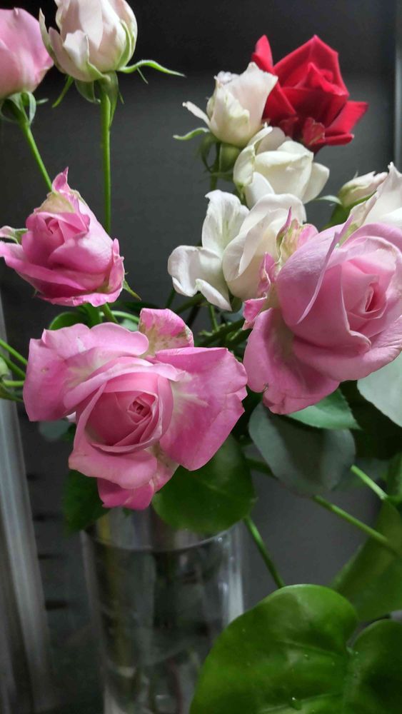 おはよう、今朝の、キッチンフラワー薔薇の生産地、から~💗💗🤍💗