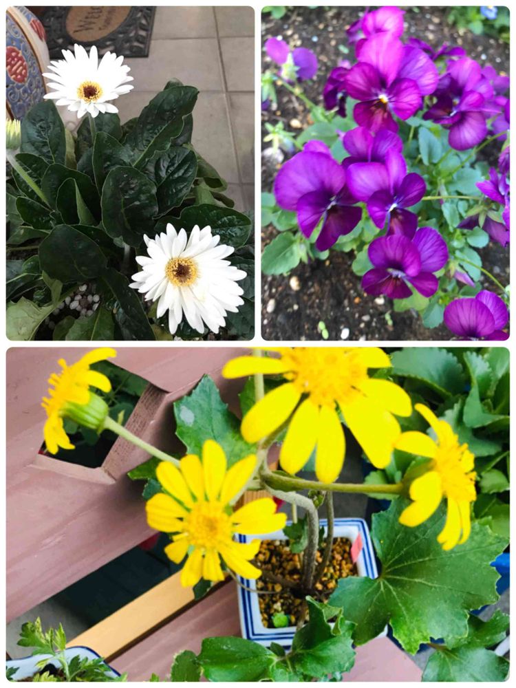 バルコニー/ベランダ,ガーベラ白,パンジー紫の投稿画像